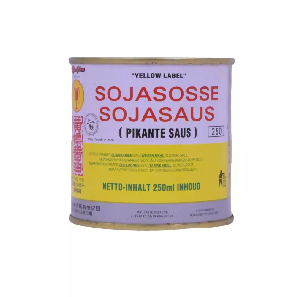 Soy Sauce 275 g “Yellow Label””Mee Chun” Bestellen Artikelnummer: Code 7520 Categorie: Mee Chun artikelen Beschrijving Beschrijving “Mee Chun” Verpakking: krts. 24/275 g blikken Product code: 7520 Gerelateerde producten Hoisin Sauce “Mee Chun” Lees verder Preserved Mango Threads 100 g “Mee Chun” Lees verder Bean Curd Sauce “Mee Chun” Lees verder Plum Sauce “Mee Chun” Lees verder